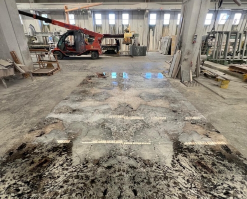 Sistema innovativo di taglio a gettito d’acqua permette di effettuare qualsiasi rifinitura, intarsio, sagomature e incisioni con la massima precisione.